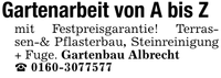 Gartenarbeit von A bis Zmit Festpreisgarantie! Terrassen-& Pflasterbau, Steinreinigung + Fuge. Gartenbau Albrecht_ ***