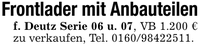 Frontlader mit Anbauteilenf. Deutz Serie 06 u. 07, VB 1.200 € zu verkaufen, Tel. ***.