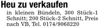 Heu zu verkaufenin kleinen Bündeln, 300 Stück-1 Schnitt; 200 Stück-2 Schnitt, Preis nach VB, Tel. ***