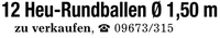 12 Heu-Rundballen Ø 1,50 mzu verkaufen, _ ***
