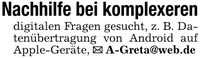 Nachhilfe bei komplexerendigitalen Fragen gesucht, z. B. Datenübertragung von Android auf Apple-Geräte, _ A-Greta@web.de
