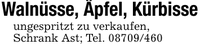 Walnüsse, Äpfel, Kürbisseungespritzt zu verkaufen,Schrank Ast; Tel. ***