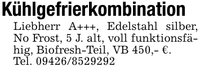 KühlgefrierkombinationLiebherr A+++, Edelstahl silber, No Frost, 5 J. alt, voll funktionsfähig, Biofresh-Teil, VB 450,- €.Tel. ***