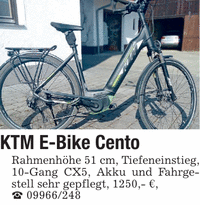 KTM E-Bike Cento Rahmenhöhe 51 cm, Tiefeneinstieg, 10-Gang CX5, Akku und Fahrgestell sehr gepflegt, 1250,- €, _ ***