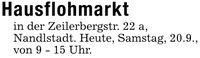 Hausflohmarkt in der Zeilerbergstr. 22 a,Nandlstadt. Heute, Samstag, 20.9., von 9 - 15 Uhr.