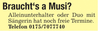 Braucht's a Musi?Alleinunterhalter oder Duo mit Sängerin hat noch freie Termine.Telefon ***